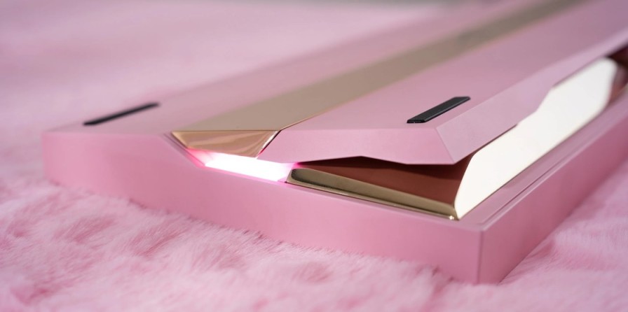 同時,側面的腰線處也加入了從pcb打下來的氛圍燈,這個細節爲鍵盤增添了一絲科幻感。這個設計讓我聯想到以前我非常喜歡的一些Duke的作品,那時我也因側燈的科幻感而癡迷。