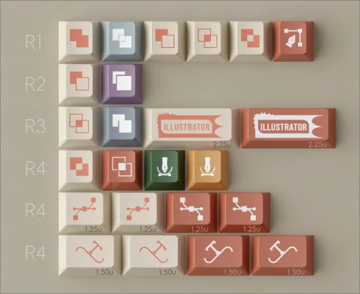 這款鍵帽是在土醬老牌的設計師系列產品基礎上進行重做,目前暫定將推出AIer,PSer和CADer三款產品,搭配多色增補,在字體和快捷鍵ICON上進行了重新設計。