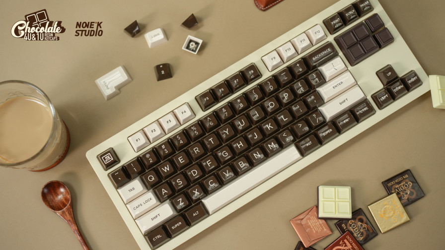 這款鍵帽是由不務正業工作室推出的巧克力個性鍵帽,爲了模仿巧克力的色香味,加入了一定的食用香精。