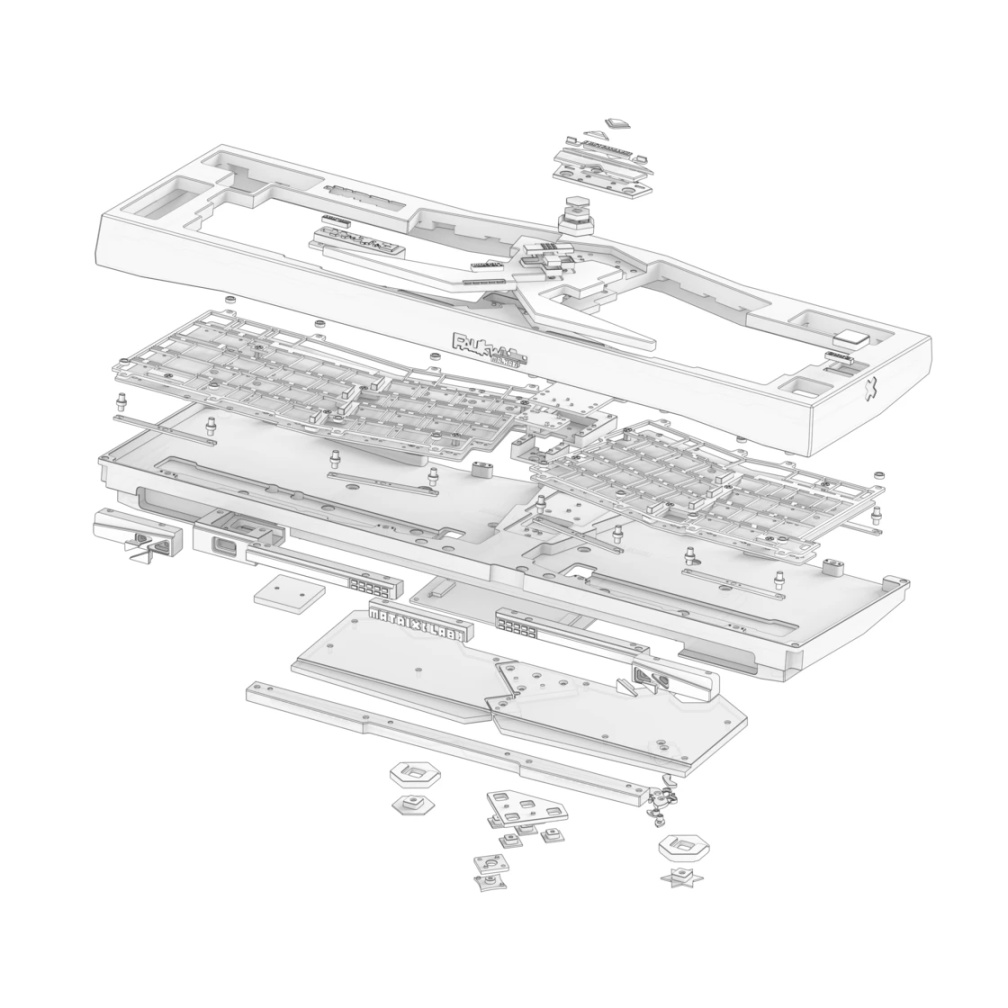 內膽方面,採用1.6mm無開槽的設計。新增了升級靜電容內膽包選項,同Class60一樣使用niz方案的開關與衛星軸,同時PCB也將支持Topre規格的其他靜電容開關(需自行更換定位板),個人感覺top半鋼或者無鋼gas會是一個很不錯的選擇。