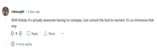 对此,有不少玩家也在评论区表示赞同:“在与Enkidu一起时,没有指南针实际上是很棒的。只需询问鸟类重新确定方向,这样的方式非常具有沉浸感。”