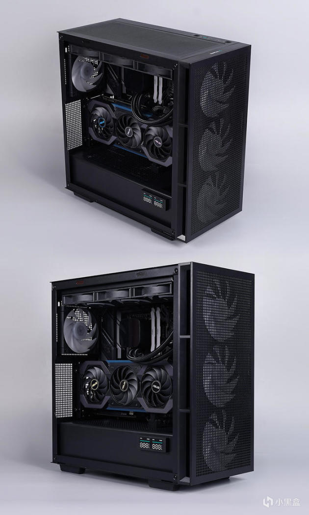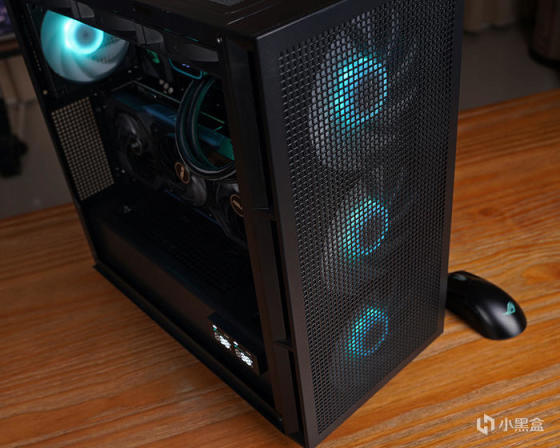 CH560 另主打散热!机箱面板有着高达 30% 以上的散热开孔,前置可支持三个 140 风扇,出厂直接填满!