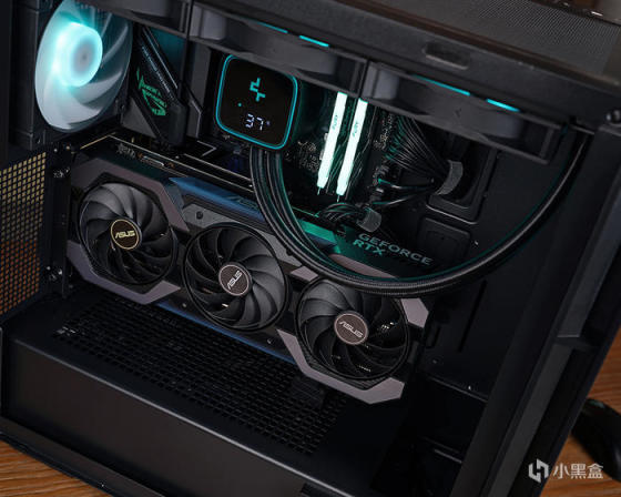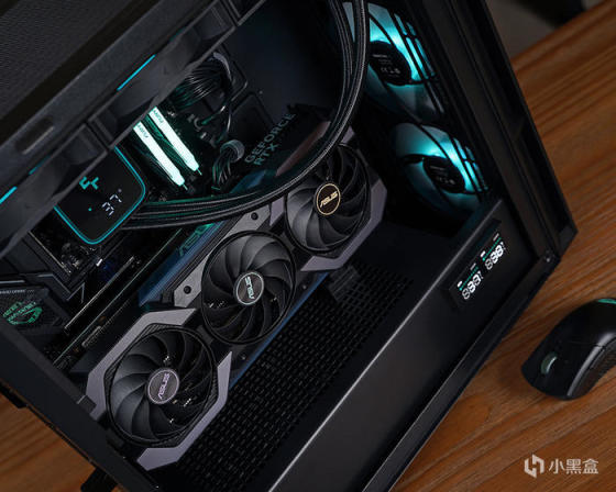 显卡竖装为了好看!选用的是华硕 ATS 巨齿鲨 GEFORCE RTX 4060 O8G GAMING,冲着就是其不错的外观设计,4060 性能还算够用,三风扇的散热规格,其散热效能更是过剩,使用体验非常的安逸。