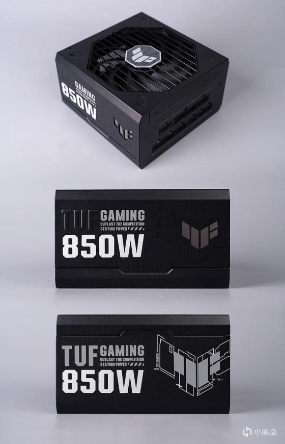 电源本体,采用标准 ATX 电源尺寸规格,具体 150×150×86mm ( L x W x H ),外观有别于常规电源,TUF GAMING 上下左右两边做均倒角处理,有着非常不一样的造型外观,机身两侧,品牌元素修饰,凸面 TUF GAMING ... 组合型号文字,一侧为 TUF LOGO 光亮处理。