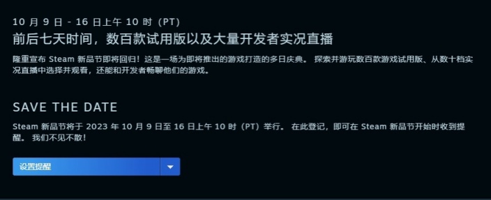 由於v社的 機制,之前參與過新品節的未開發完的遊戲將不能再次參與新品節活動,所以之前新品節體驗過的demo無法再次提供demo遊玩,不過好的一方面是你將有大量新遊戲可以嘗試