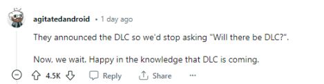 “他们公布dlc只是让我们不用再继续问有没有dlc,现在就老老实实等着发售通知那天乐吧”