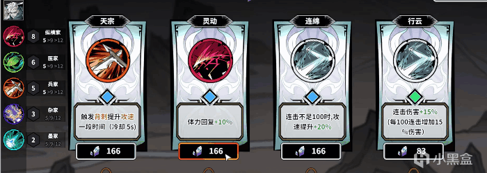 在游戏的商店内,玩家可利用灵石兑换心法能获得不同的增益效果,有与回血相关增益的医家心法、与暴击相关增益的墨家心法等等,在兑换心法到一定级数后,玩家可激活特有的羁绊效果变得更强。是选择提高角色的回血能力存活下去,还是提高暴击打造更高伤害的输出,由你决定!