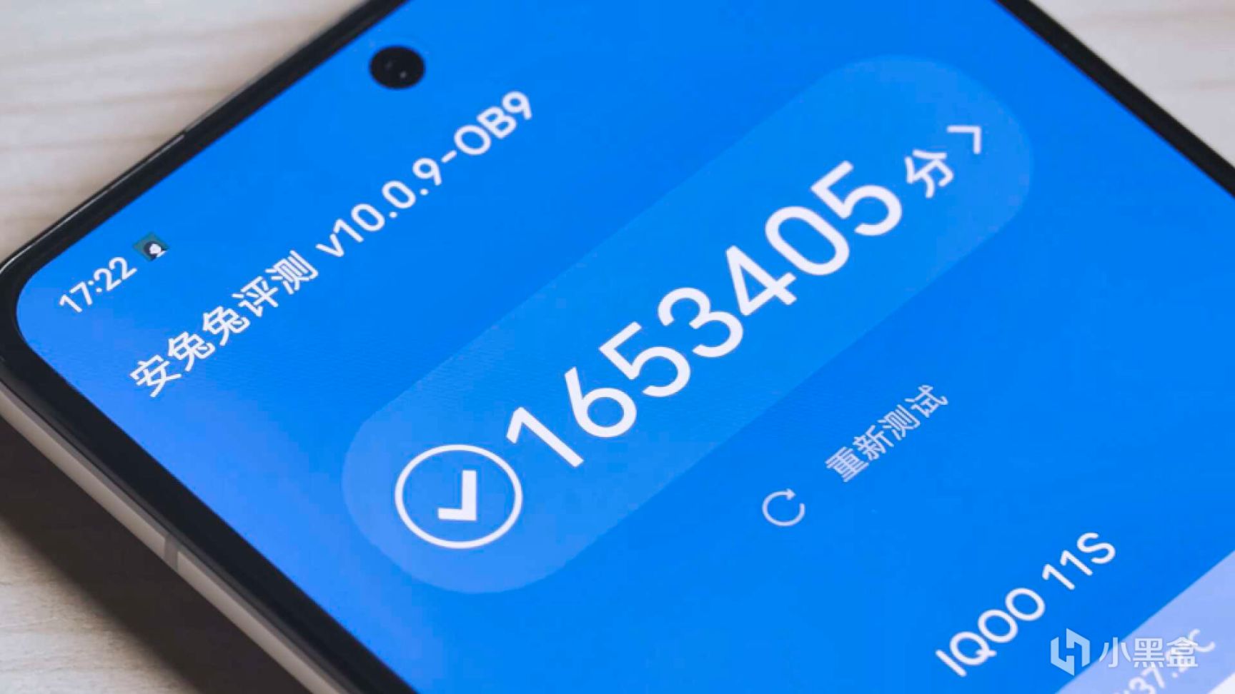 为了配合顶级赛事的项目,11S使用的是6.78寸的E6屏幕,目前三星手机端顶级的屏幕了,支持2K 144Hz,局部峰值亮度1800nit,我因为没有测亮度的工具,这一部分只能看看参数了,下图跑分,用APSC画幅相机怼脸拍,屏幕效果看着也不错是吧。
