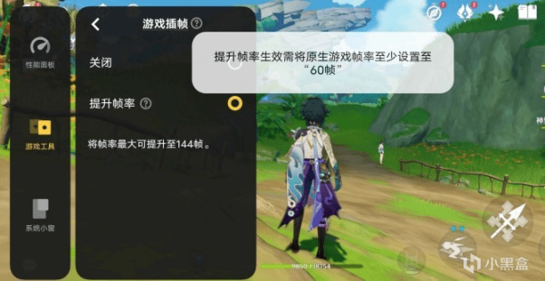 而对于原神这一类的游戏,特效全开之下,稳定59.5FPS,但是发热最高到了44.1℃左右,因为模式是60FPS,开启插帧和超分会变为144FPS。