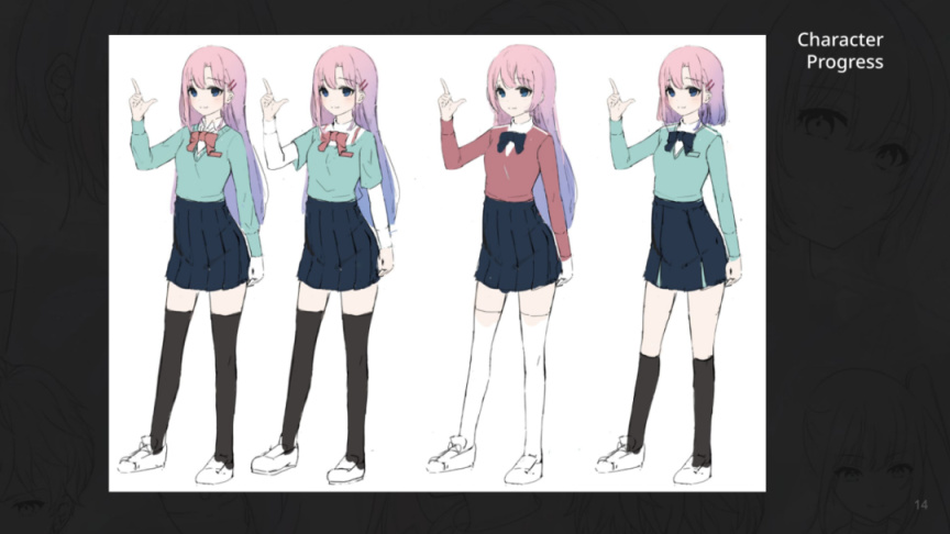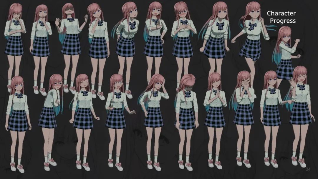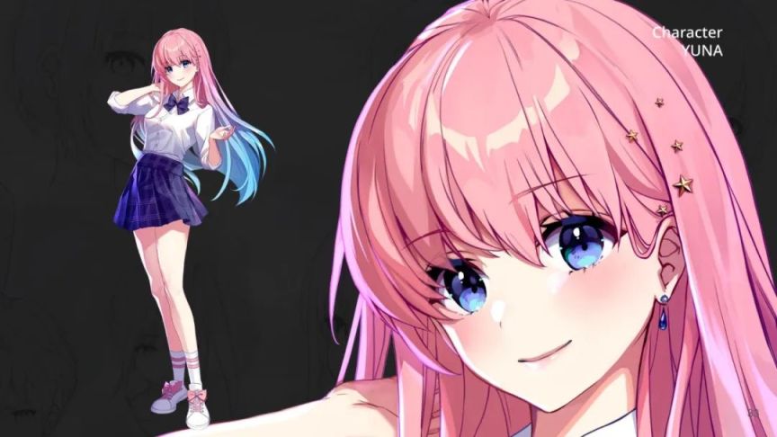 《永夜》给玩家提供了三位可攻略的美少女,有脱胎于韩国爱豆文化的宥娜,在人物设计中使用了二次元动画中常用的粉毛,再加上JK制服,很符合动画中高中生偶像的形象。