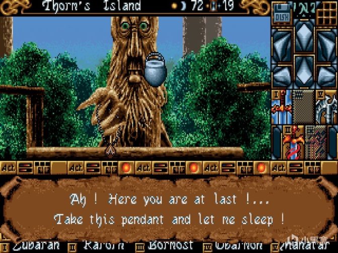 你孤身一人在肯多利亚(Kendoria)的中心开始旅程,这是一个幅员辽阔的国家,也有一些死气沉沉。和那些让你在地牢里行动的游戏不同,在《无限之门》中,大部分时间都是在室外度过的。游戏除了大地图以外没有别的指引,目标也非常简单:到达伊沙儿(Ishar)[1]城堡并杀死邪恶的魔法师克罗格(Khrog)[2]。作为《阿尔博雷阿的水晶》(Crystalsof Arborea)的续作,游玩《无限之门》不需要你去补前作,而且还加入了许多有趣的情节。