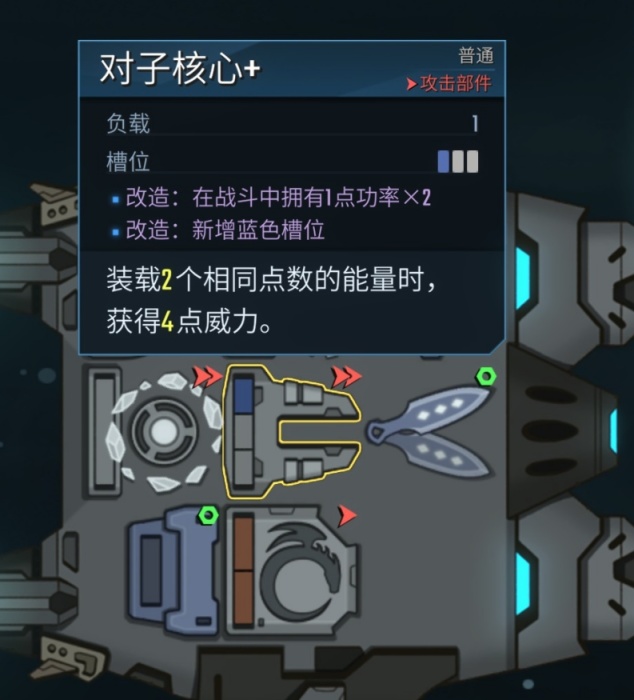 就DEMO的体验来看,这是一款非常有特色的策略Roguelike太空对波游戏,两艘飞船面对面摆开,我左敌右,玩家需要将生成到手牌中的能量填入攻击部件中,以此积攒同一行的对波能量威力,并通过同一行的数字决定对对方造成的伤害。基础玩法之上,是充沛的自由度——玩家需要在总共9个格子的船上进行部件的自定义,可以将各种各样效果的辅助部件和攻击部件装配上去。