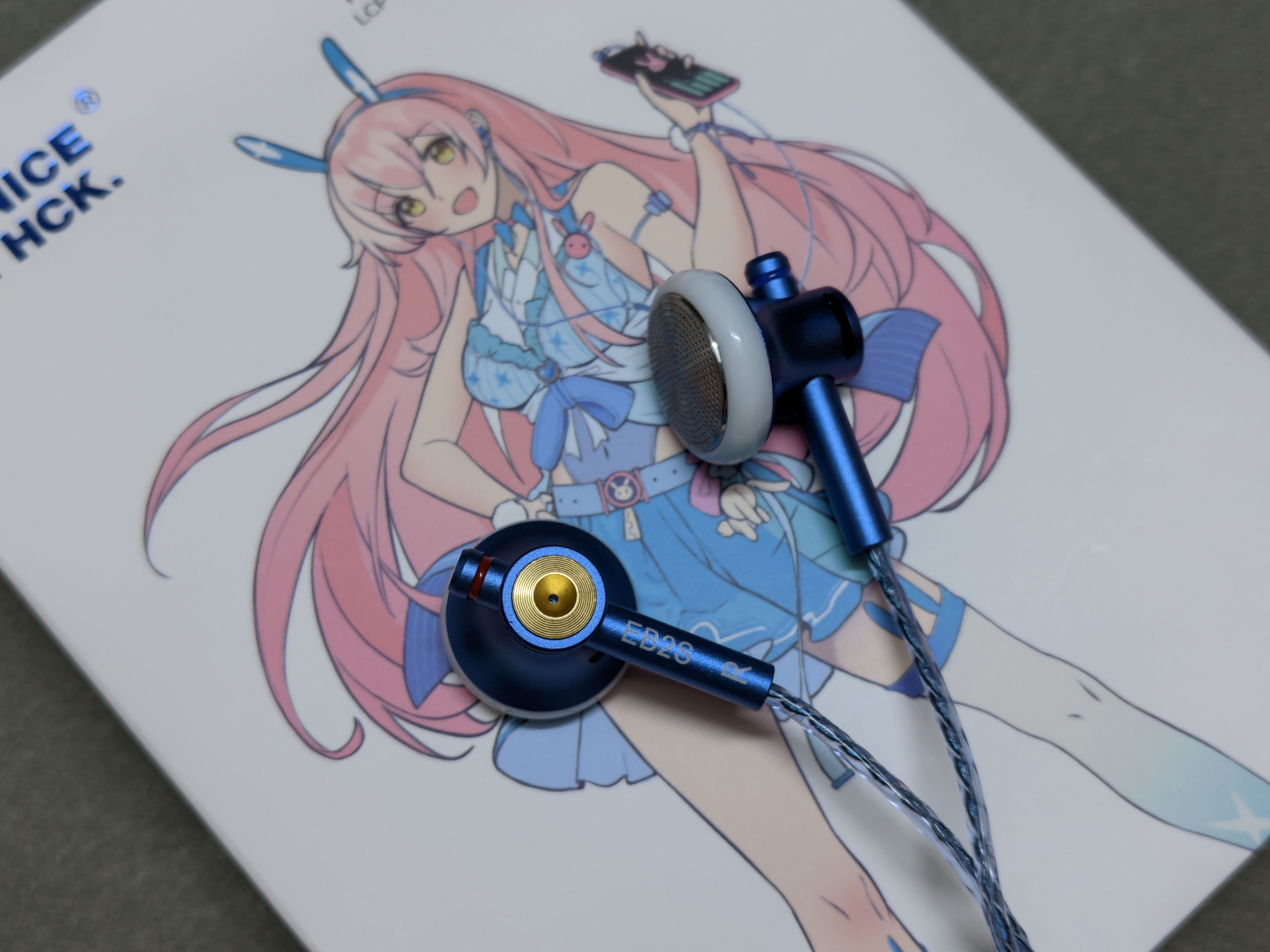 沒有下半身的伊醬是不完整的,就像西方不能沒有耶路撒冷,理塘不能沒有丁真一樣😭在NIC官羣羣友的呼聲中伊醬也終於迎來了整張的立繪,相比小綠帽可謂是重量級升級,作爲前1000的購買者也如願以償的贈送了立牌,包裝還是一貫的白底簡約風,但是相比小綠帽的一體感要更加精進,包裝腔體線材五金器件都統一了主題色調做了微定製處理,作爲eb2s的升級款eb2spro也保留伊醬原本立繪上原有的髮色,但是在這個基礎上淡化飽和度使之看起來更爲和諧。除了平頭標配的海綿套之外所持的配件也多了一對自家售賣的平頭膠圈,適合耳洞比較大的加以固定和有效防止漏音,算是比較貼心了。