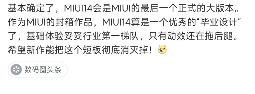 另外还来源于MIUI的臃肿,不知何时起引以为傲的MIUI成为了小米手机的拖累。我个人感觉是从增加动物叫声开始。与其在摇摇欲坠的高楼上缝缝补补,不如另起炉灶。让新的系统更有可塑性。