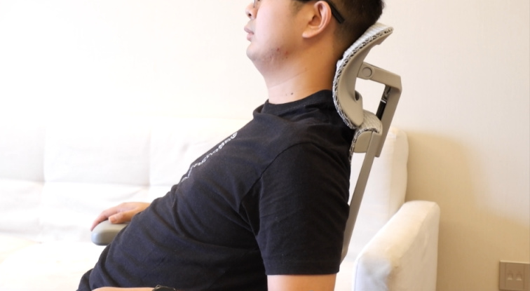后颈支撑部分也是网布材质,触感相当棒。超宽的大曲面头枕能够很好贴合颈部,即使左右摇晃也没有问题,再配合上可上下、角度旋转调节,后仰休闲时的体验非常不错。