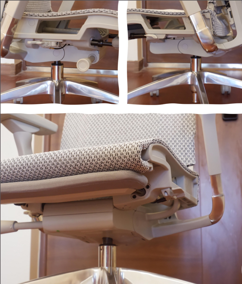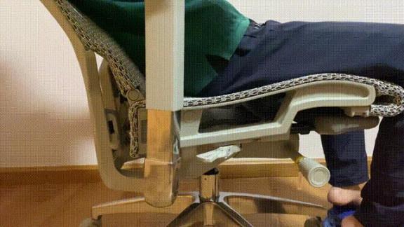 保友pofit 2的坐垫支持前向深度调节,可以根据自己的腿长来确定整个椅子坐垫的长度,以便于适配不同的坐姿。这个可调节的功能最重要的一点在于它能避开腿部悬空的感觉,让坐下来的舒适感更强。
