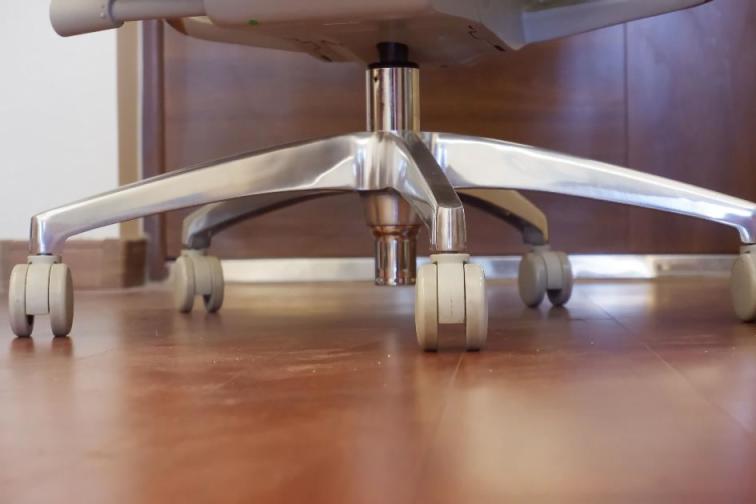 轮子部分的话,几百块的椅子的轮子一般都是尼龙的,这样很容易破,高端的椅子的轮子一般都是尼龙+PP+PU皮革包裹,这样推动时候噪音更小,耐用性更高,并且不会划伤木地板。