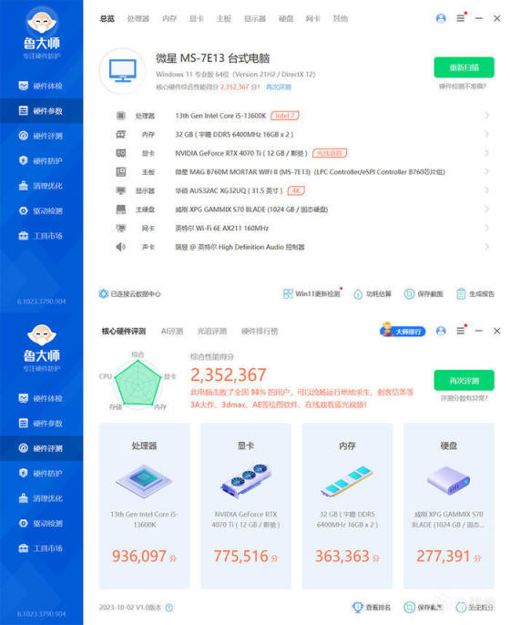 鲁大师跑分 2352364。