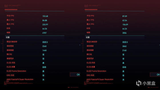 赛博朋克 2077,开启 DLSS 3,自动选项,超级光追,BENCH 测试,2K 分辨率,平均 153.48 FPS ,4K 分辨率,平均 87.09 FPS,更新了 DLSS 3,这款游戏体验提升巨大。
