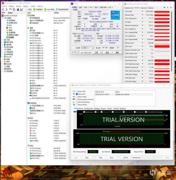 双烤测试,同样也是 20 分钟左右,CPU P-CORE 温度最大值 93°C,E-CORE 温度最大值 82°C,显示功耗 200W 左右,显卡核心温度 71.7°C(结温 83.0°C),那么以上就是这台机箱装机秀的全部内容了,如上仅供参考,所述仅代表个人观点,谢谢您的浏览,欢迎大家留言交流!