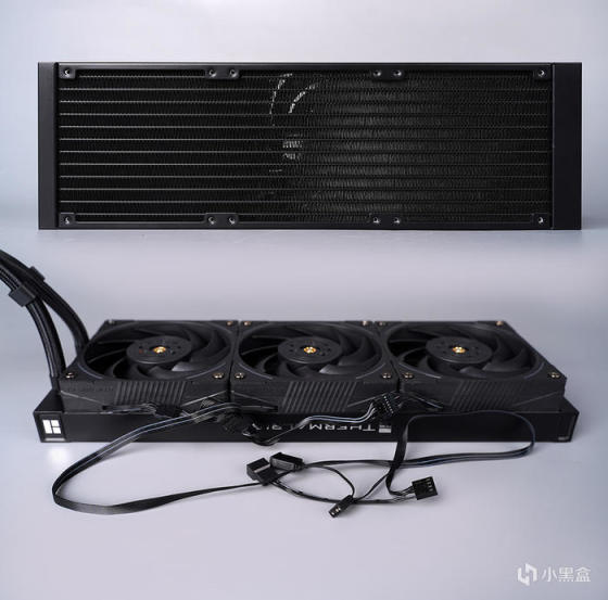 冷排具备有 14 条的水道,做工不错,鳍片十分的整齐,官标厚度 27cm。 搭配风扇 TL-K12,采用匹配的灯光线条光效设计,同时具备有不错的性能与静音表现,采用动平衡点胶 2.0 工艺,STABLY-FDB 磁力稳定轴承,可有效减少摩擦和震动,降低运行时声音和延长寿命,此外,水冷标配的风扇为串联接口设计,可大幅减少了理线数量和时间。