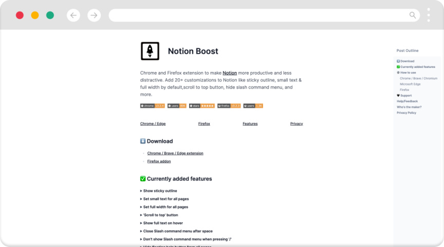 Notion Boost是一款Notion增强百宝箱,不仅能够补全Notion无法使用悬浮目录,并且还有20多项Notion自定义功能,提高你的工作效率