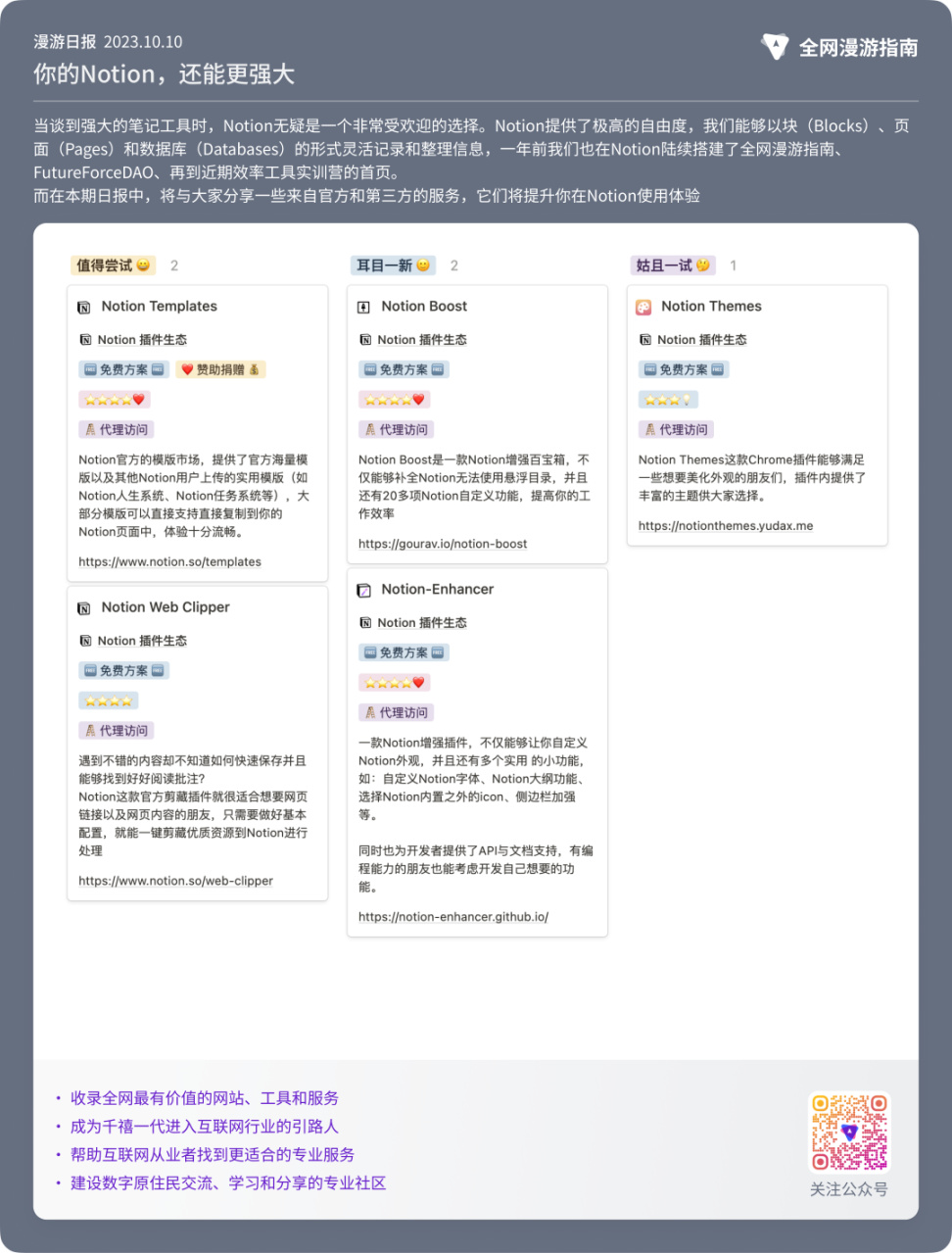 而在本期日报中,将与各位Notioner分享一些来自官方和第三方的服务,它们将提升你在Notion使用体验。