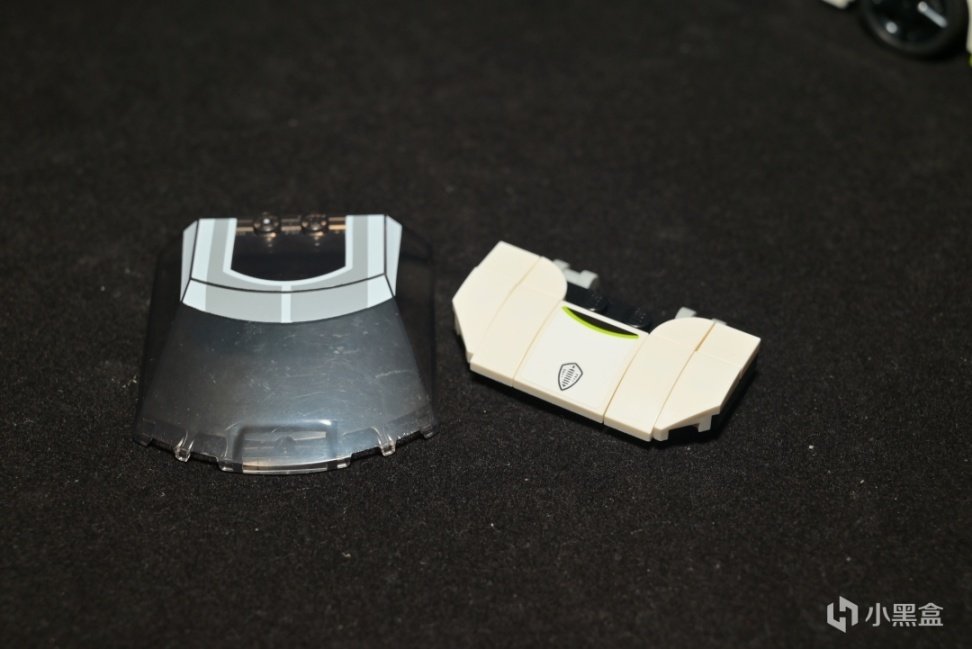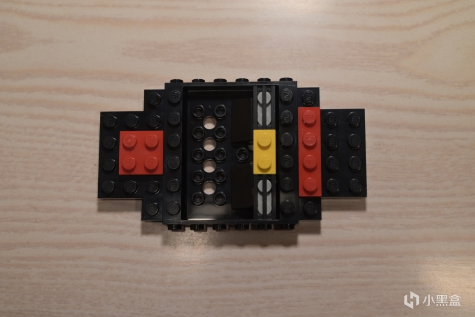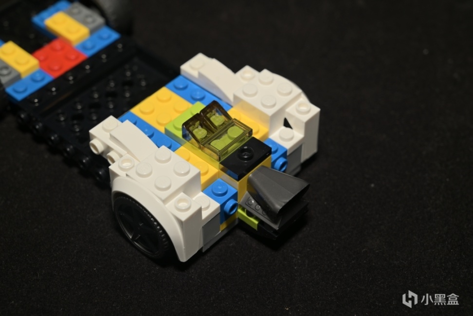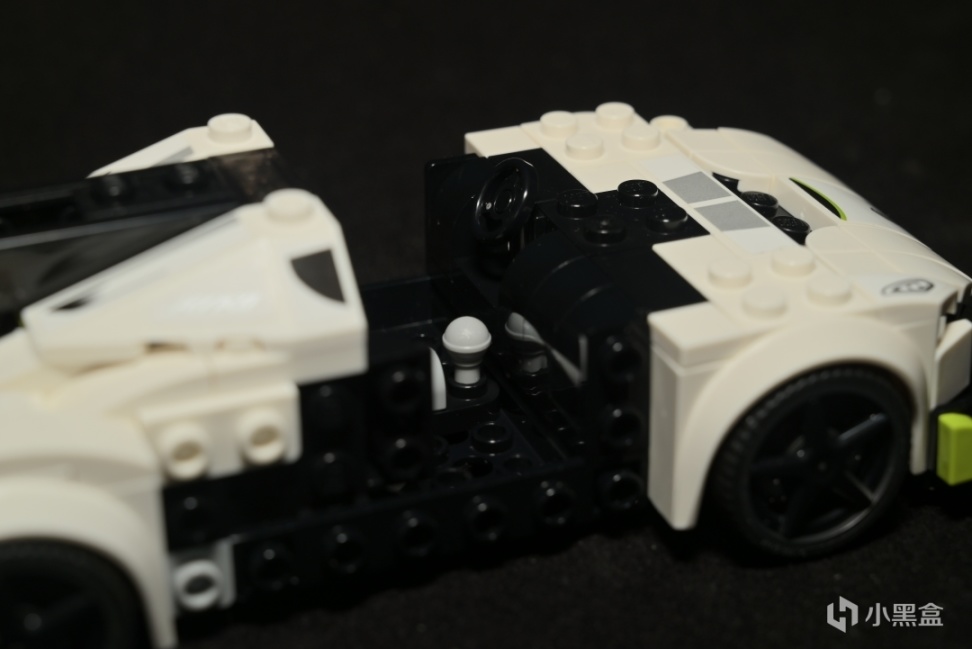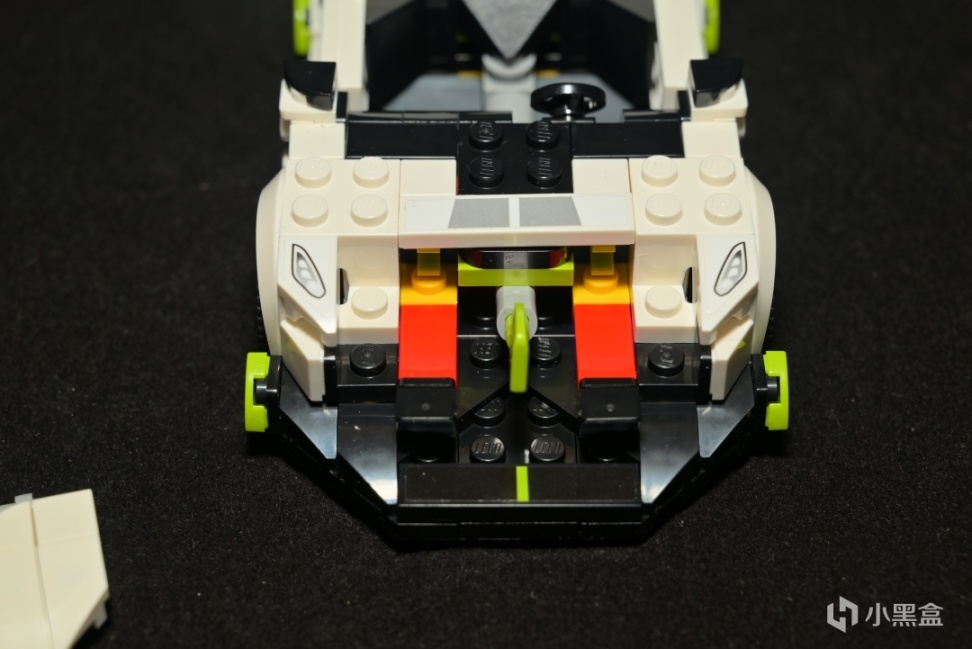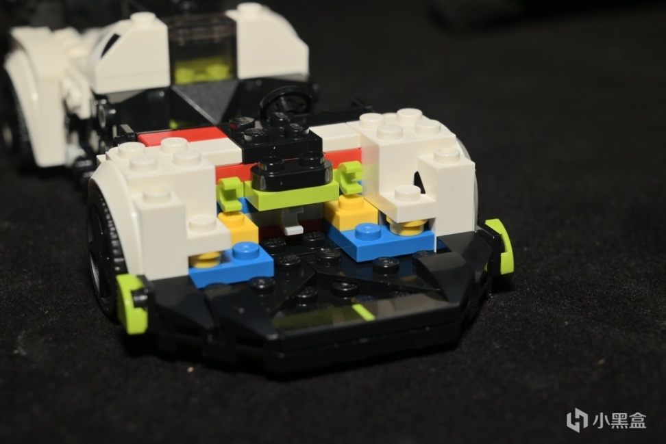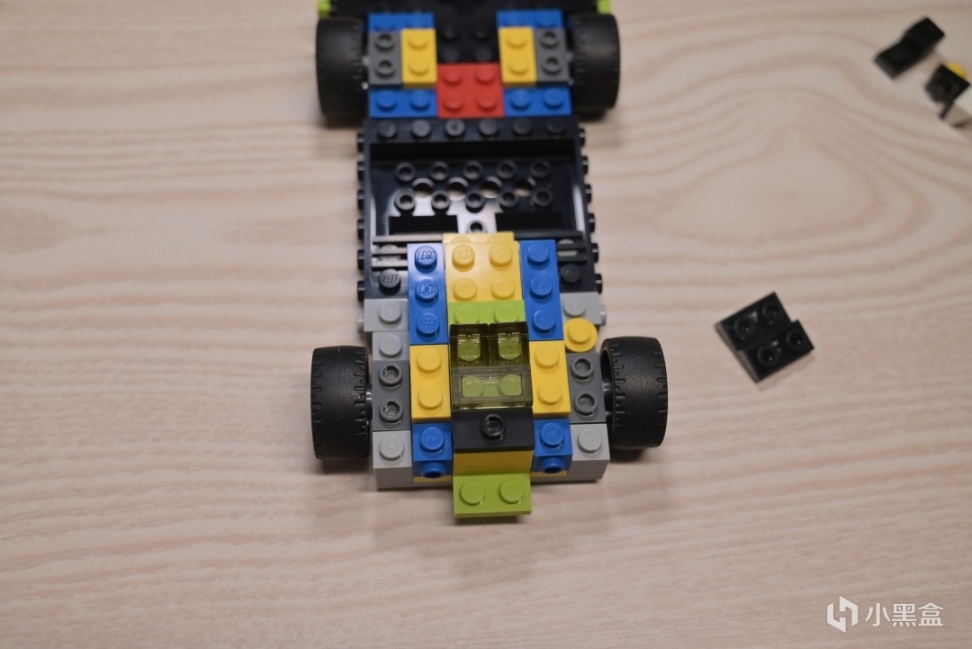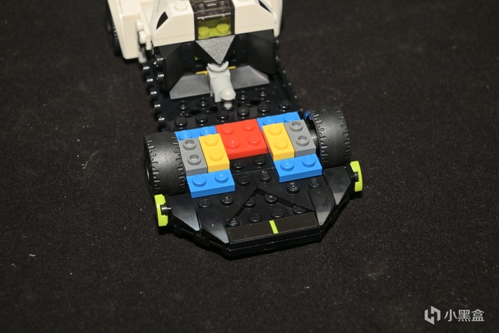 侧翼用一个1/2的三角光滑砖和一个T形砖组成两侧的风道,还原整车的空气动力构造,底部还还原了车体的托架系统。
