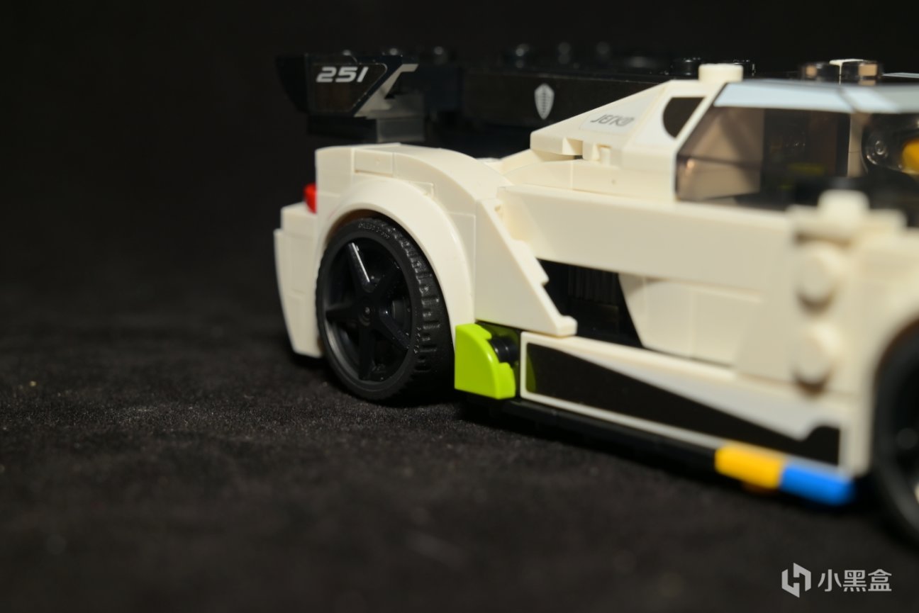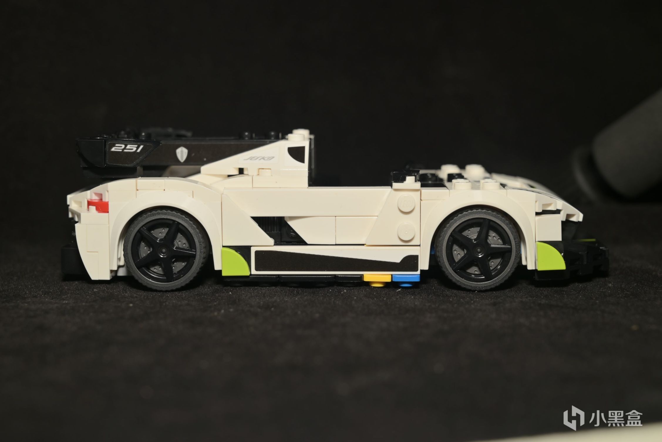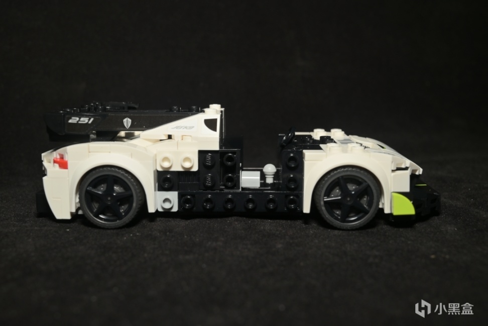 优秀的外观还原,单颗零件0.25的优秀性价比,相当有创意的色彩搭配,如果对白色零件时间长会氧化变黄不太介意的话,这台车在百元内是完全可入的款。有点可惜的地方就是柯尼塞格的标志性幽灵徽标并没有还原,甚至没有贴纸。