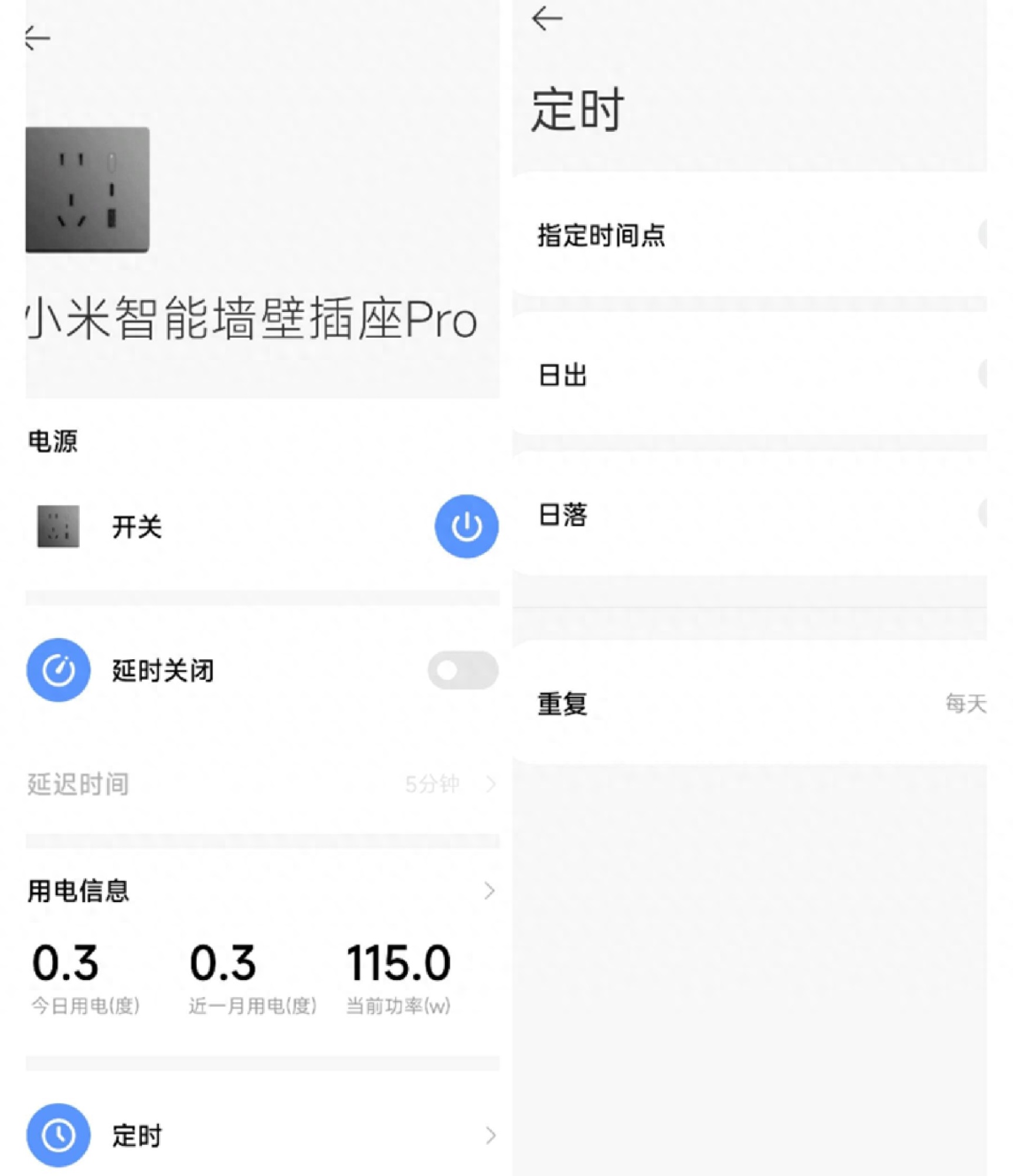 在APP中,可以设置面板延时关闭,观测用电量和用电功耗,也能远程管理操作的开启关闭,你也可以直接把它填加到米家智能场景中统一管理。