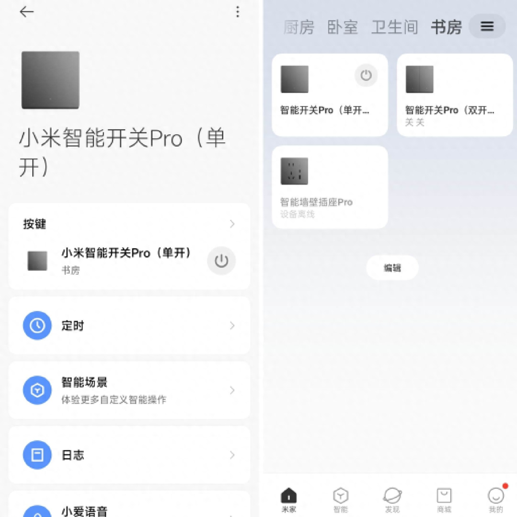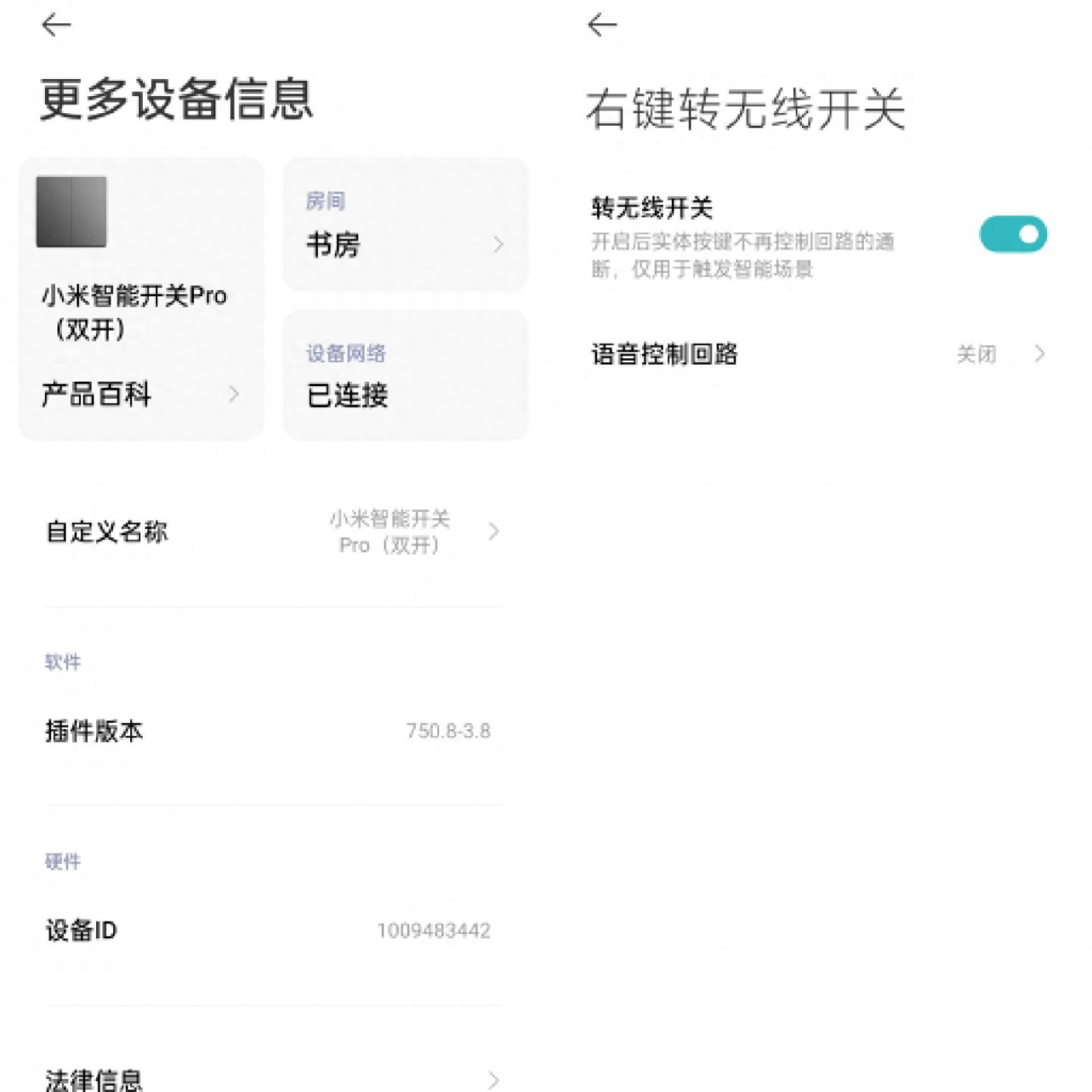 另外就是,如果你购买的是双键,三键开关,如果只适配一组灯具的话,另外空余的按键是可以通过米家APP转换为无线开关的,开关的功能完全可以自行定义,比如一件开关全屋灯光等,非常的好用。