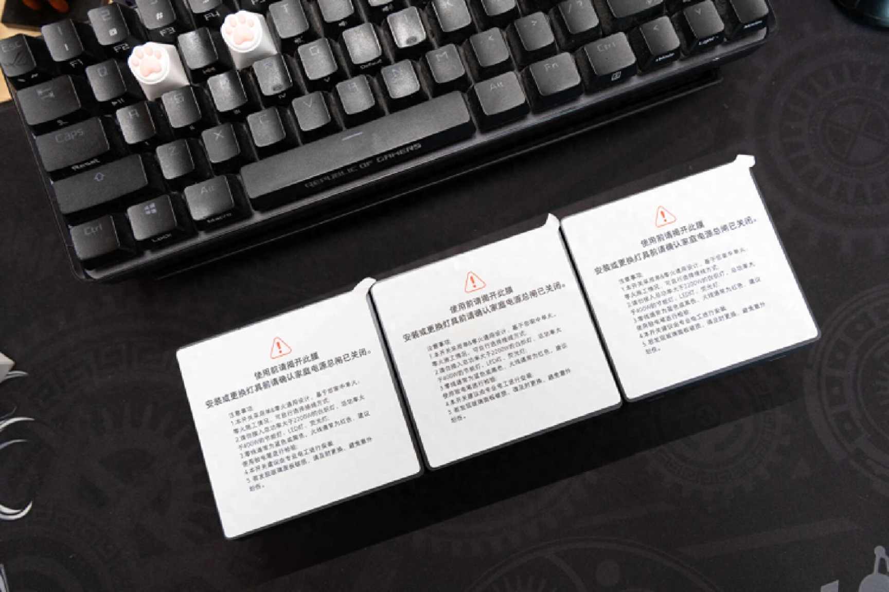 开关插座面板正面还贴有保护贴膜,贴膜上标注了安装注意事项等,保护和提示都非常细致。