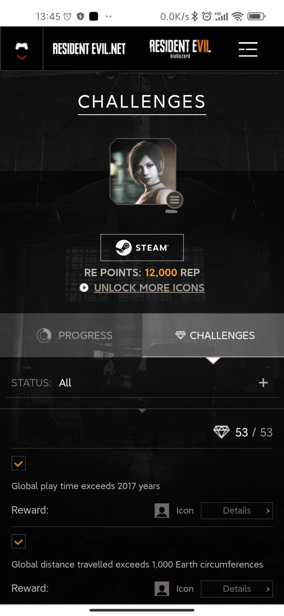 生化危机门户网站主要是记录世界各地玩家的数据供大家参(pan)考(bi),且内置更多不同于steam的成就,并可以使用线上积分兑换图标,壁纸,3D模型,游戏内道具等。线上积分可以通过购买游戏以及完成周常任务获得。