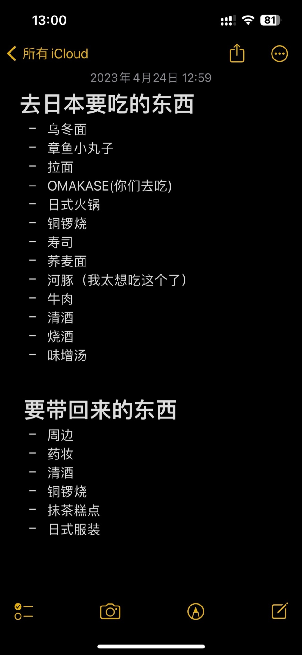 - 消费真是一个大头,大家肯定少不了买东西带回国的,这里多说俩句。买任何东西几乎都可以去免税店看到,日本每个城市随便走俩步就能看到免税店,免税店真的是时间杀手,金钱杀手,进去出来,钱包少了,时间少了。提个醒,时刻而至,后面回国的时候,机场免税店才是真离谱,建议提前四个小时去,使劲逛,我就是管不住自己的手,没次看到京东价格和免税店价格一比,真忍不住买。(烟每人只能带俩条,酒俩瓶)。就不能放到行李箱,手提带上飞机,其他都可以手提或者托运。