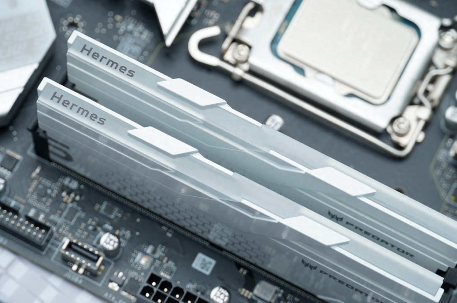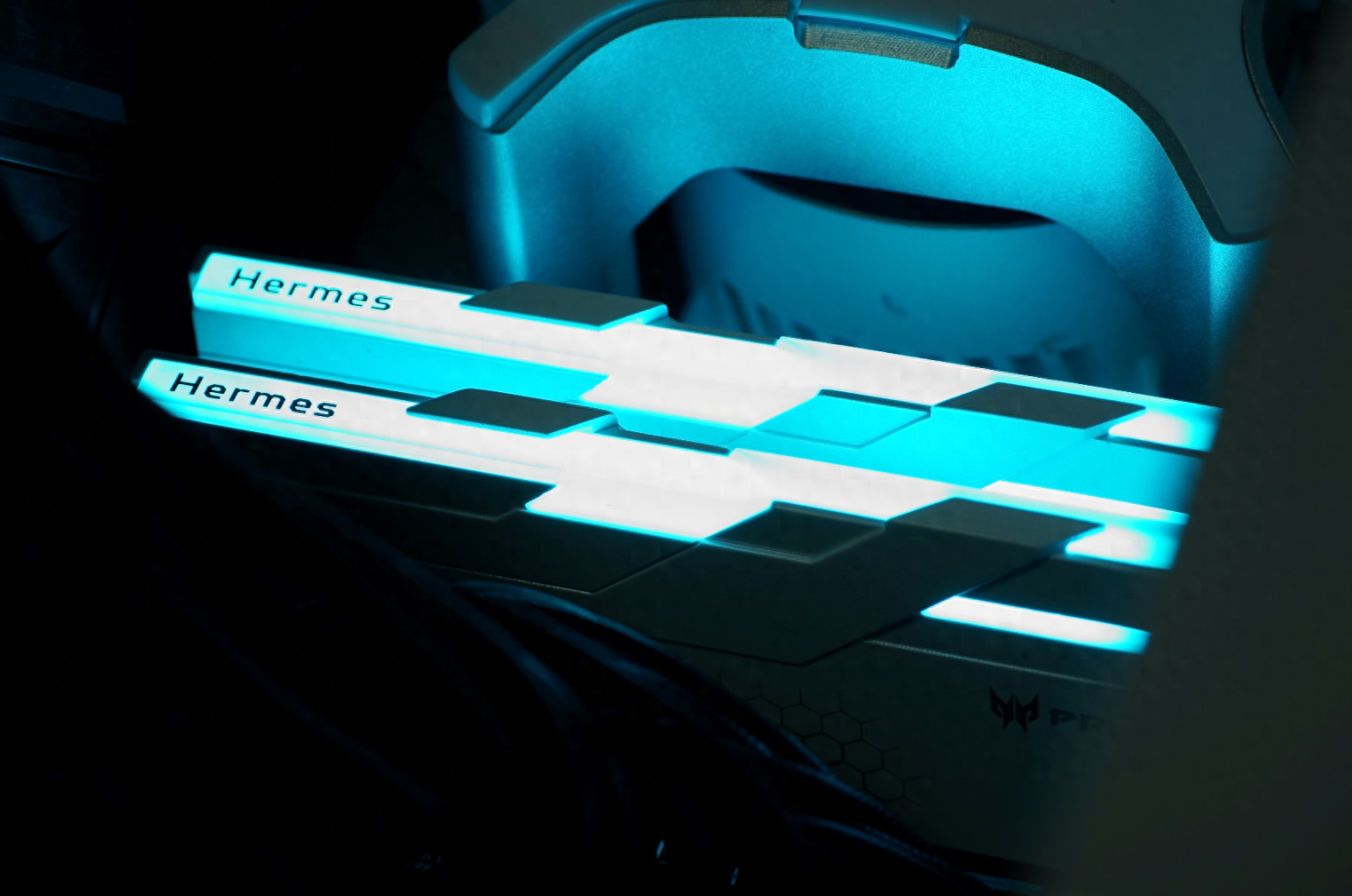 ▲为了满足本次内存超频的需求,我使用的是宏碁掠夺者(PREORTOR)的新品Hermes冰刃,在宏碁掠夺者的产品线中,Hermes冰刃是旗舰RGB灯条,高于我之前超频过的Vesta Ⅱ。