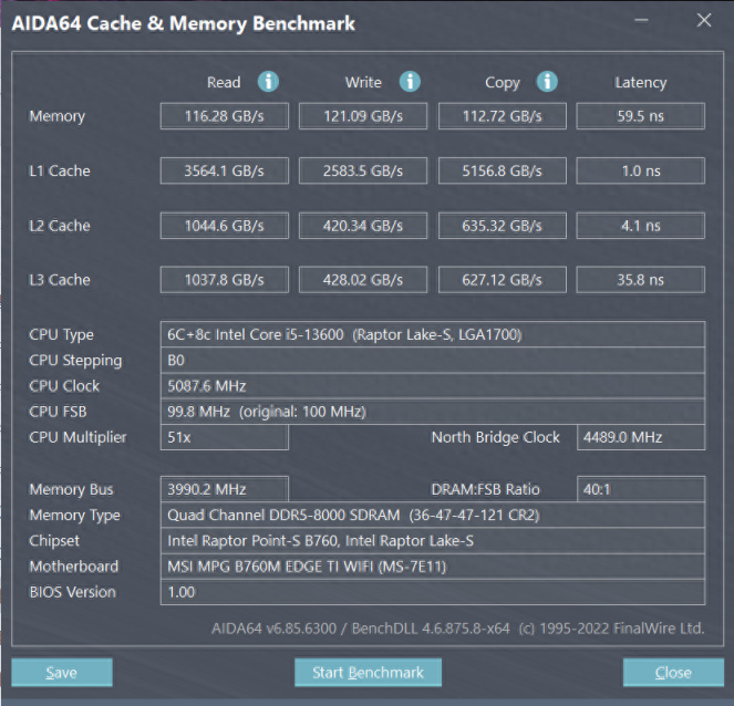 ▲本次使用的是intel 第13代酷睿i5-13600K,这不是一款新的CPU,使用这款CPU主要是为了后面的内存超频部分,所以这里我只来简单测试一下这款CPU在微星MPG B760M EDGE TI主板上的性能释放吧。