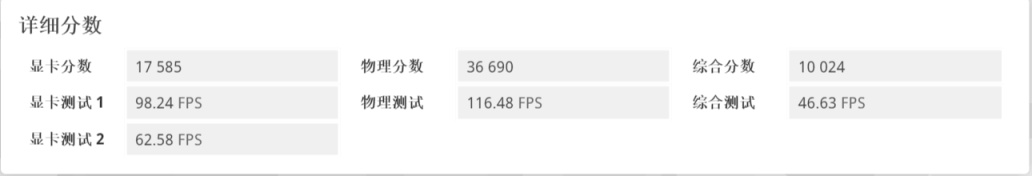 ▲可能很多朋友对分数不是很了解,我们直接来看帧率,在显卡测试1中,帧率为98FPS,而在显卡测试2中,帧率为63FPS,物理测试帧率为116FPS。