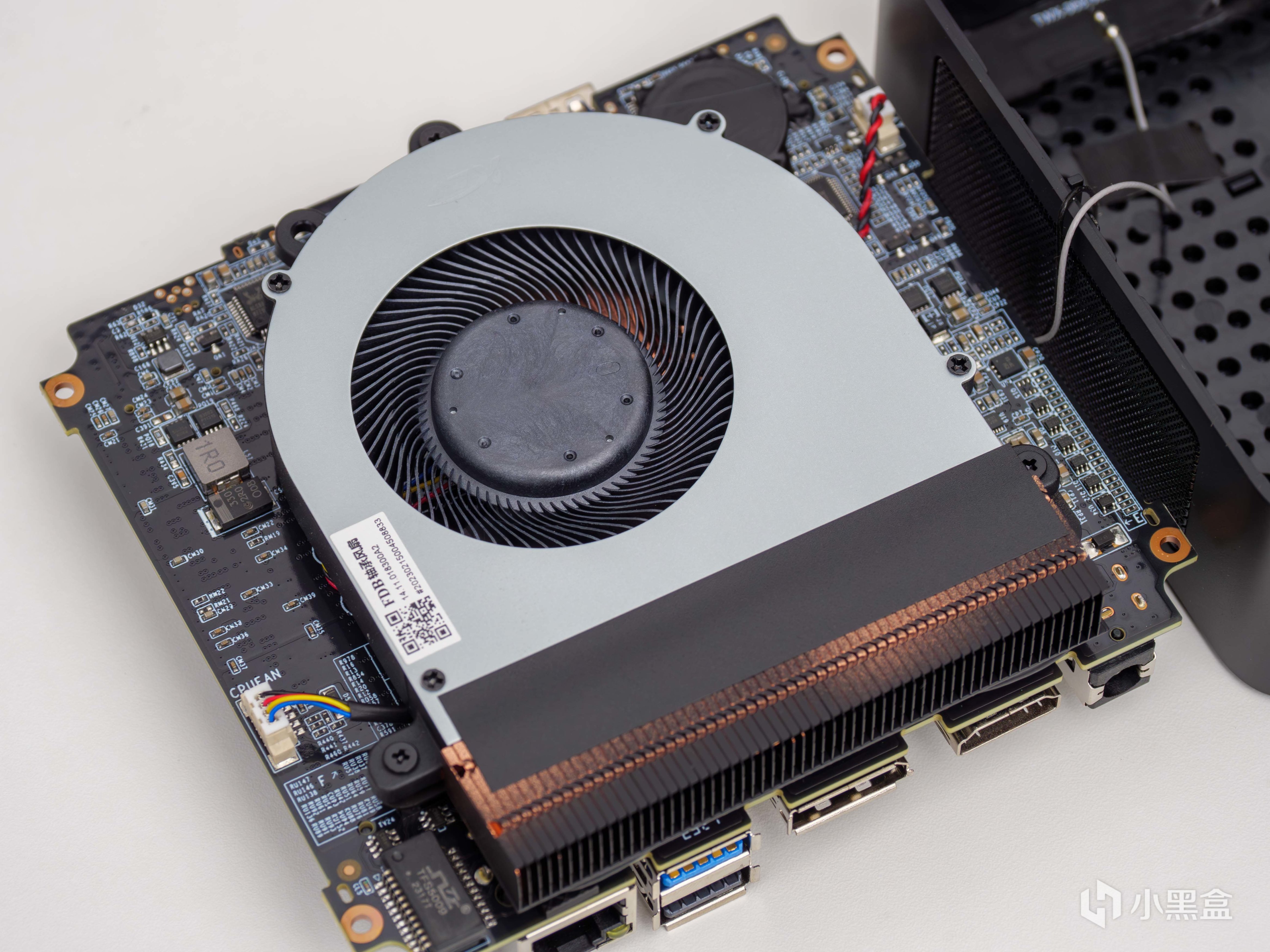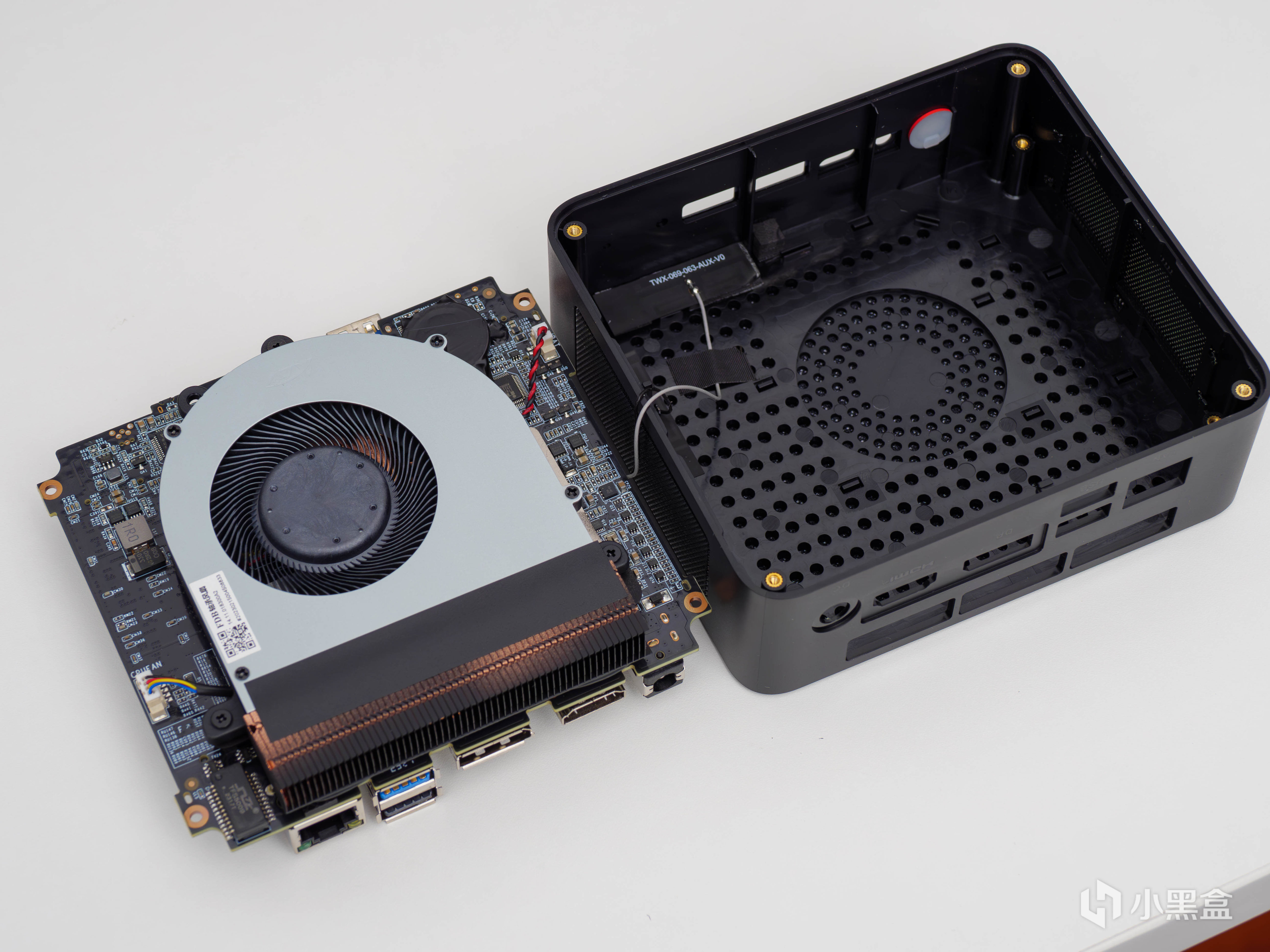 继续拆解,可以将整个主板与上顶盖分离。可以看到SER5 MAX采用了双热管纯铜鳍片的涡轮散热器进行散热,这散热规模应该要比很多笔记本电脑都要强了。