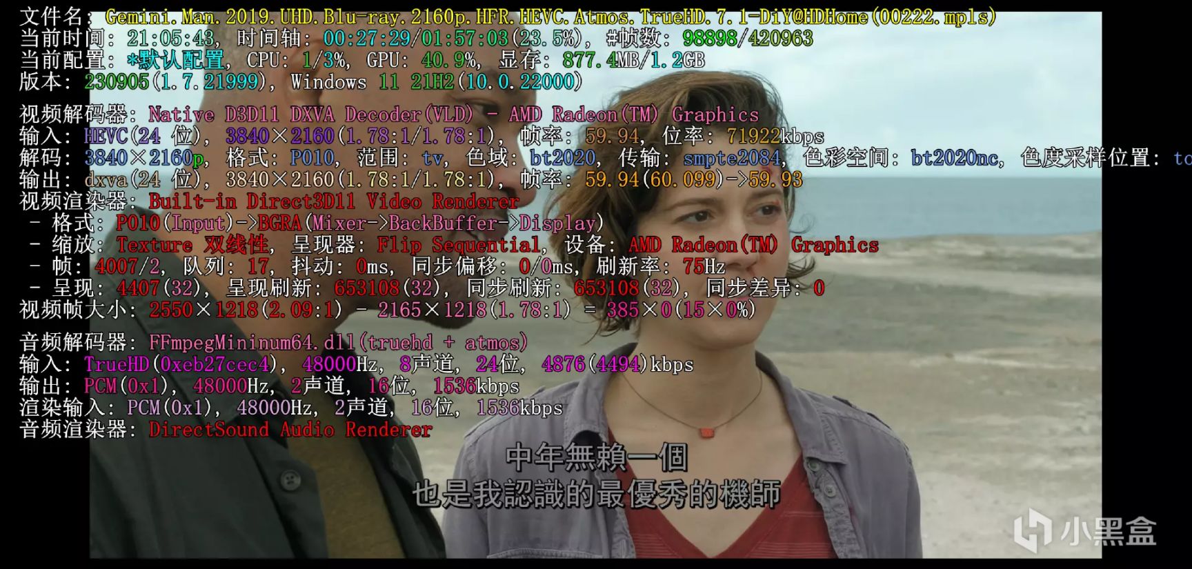 由于入手这台小主机主要是为了办公和摸鱼来用的,顶多用来给修修文章配图,所以就没有进行其他游戏相关的测试了,有兴趣的朋友可以看看其他老哥的测试结果。不过上班摸鱼还有个很重要的项目就是避开领导刷剧看电影,这里我找了个85G大的原生60帧《双子杀手》试了一下,80000Kbps码率左右的蓝光电影可以轻松流畅播放,没有任何压力,美滋滋。