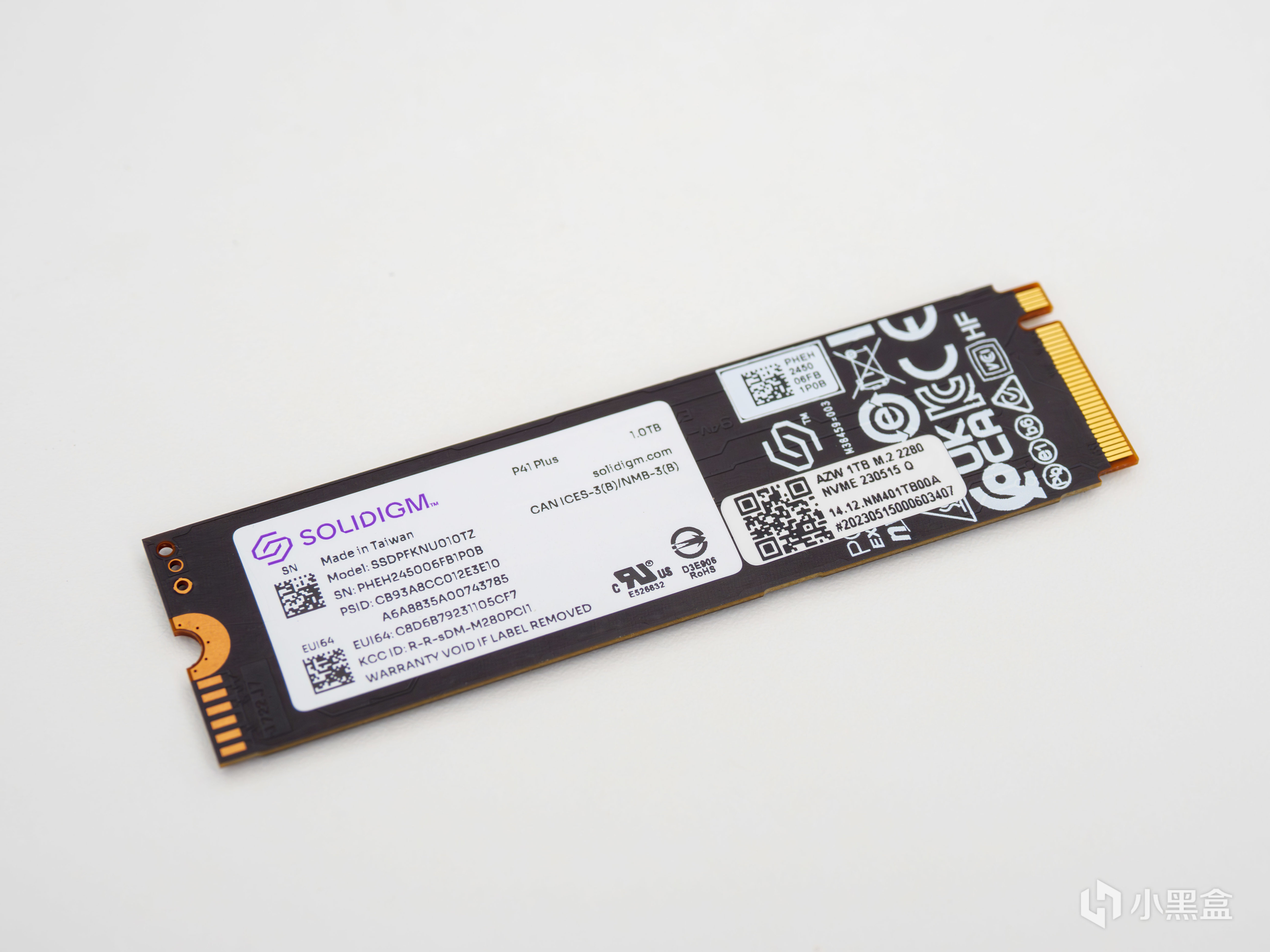 其中SSD的贴纸被撕掉了,不过我拆下来看了一眼,确定是Solidigm的P41 Plus,容量为1TB。这块SSD我测试过,原生支持PCIe4.0 x4通道,不过由于AMD 5800H的PCIe通道数量限制,在这台迷你主机里运行在了PCIe3.0 x4速率。