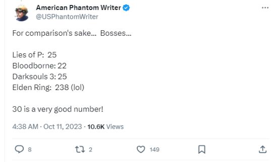 伴隨《墮落之主》的發售日臨近,其宣發也進入了白熱化階段。昨日在距離其發售還有三天之際,《墮落之主》官方推特發佈了一張關於遊戲各種數據的宣發圖。展示了遊戲的開發時長、開發人數、遊戲BOSS數量、武器裝備數量等信息。