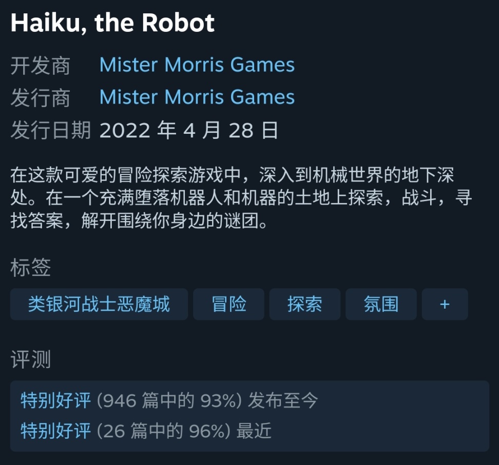 9.haiku,the robot 新史低-25% 截止10.18