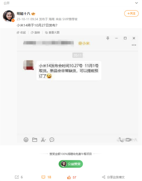 日前,有多位數碼博主和疑似小米線下門店店員表示,小米14系列發佈會將在10月27日舉行。