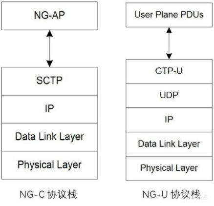 NG-C接口用于连接NG-RAN与AMF,NG-U接口用于连接NG-RAN与UPF。