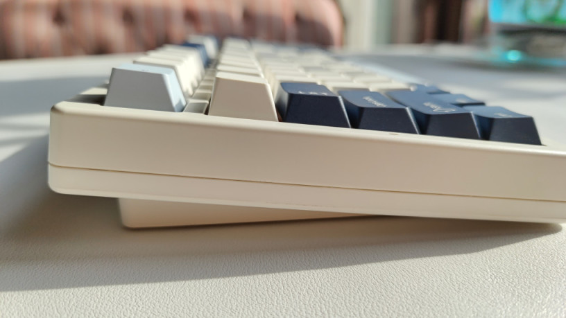 暖白色的外观设计加上下沉方向键,整体配上这套键帽的正面颜值方面还是不错的