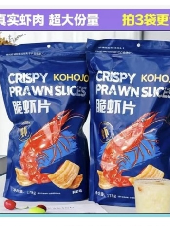 这里的薯片不是指一包里半包空气的那种,而是那种满满一大袋透明包装,一吃可以吃一下午的那种。虾片的味道不会太咸,但很适合追剧的适合抱着一大包边看边吃,一包折算也才3,4块左右,非常适合屯一柜子。
