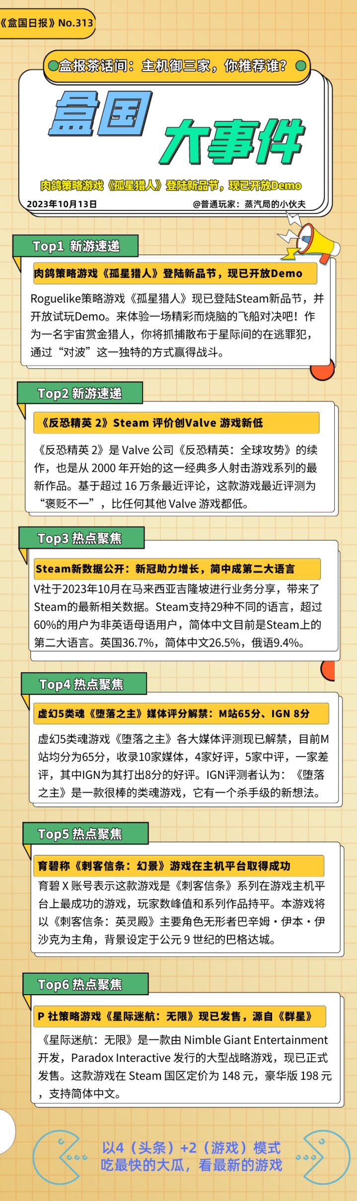 Roguelike策略游戏《孤星猎人》现已登陆Steam新品节,并开放试玩Demo,继承自《杀戮尖塔》《FTL》,同时具有极为特殊的创新玩法,推荐游玩。来体验一场精彩而烧脑的飞船对决吧!作为一名宇宙赏金猎人,你将抓捕散布于星际间的在逃罪犯,通过“对波”这一独特的方式赢得战斗,收获悬赏奖励与假期时光。Steam传送门:https://store.steampowered.com/app/2056210/