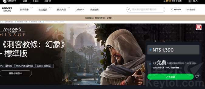 7. 台区Ubisoft+会员7天免费试用,可玩《刺客信条幻景》豪华版,开通U+试用需要中国台湾IP。