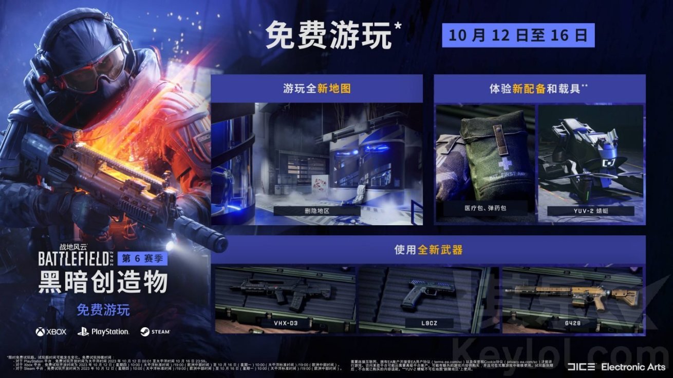 3.北京时间今天凌晨1:00,《战地2042》在Steam开启了免费游玩活动,活动截止至北京时间2023年10月17日(下周二)凌晨1:00。