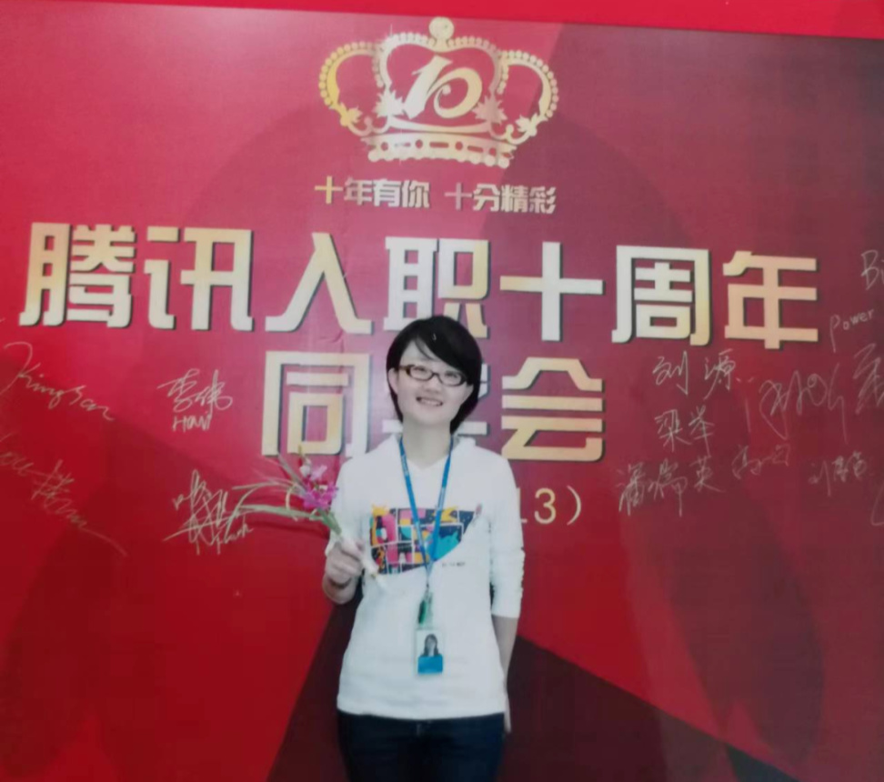2003年,她在任宇昕(現騰訊集團COO)的推薦下,成爲了騰訊的第530號員工,曾在騰訊遊戲市場部、商務部、運營部多個部門任職。
